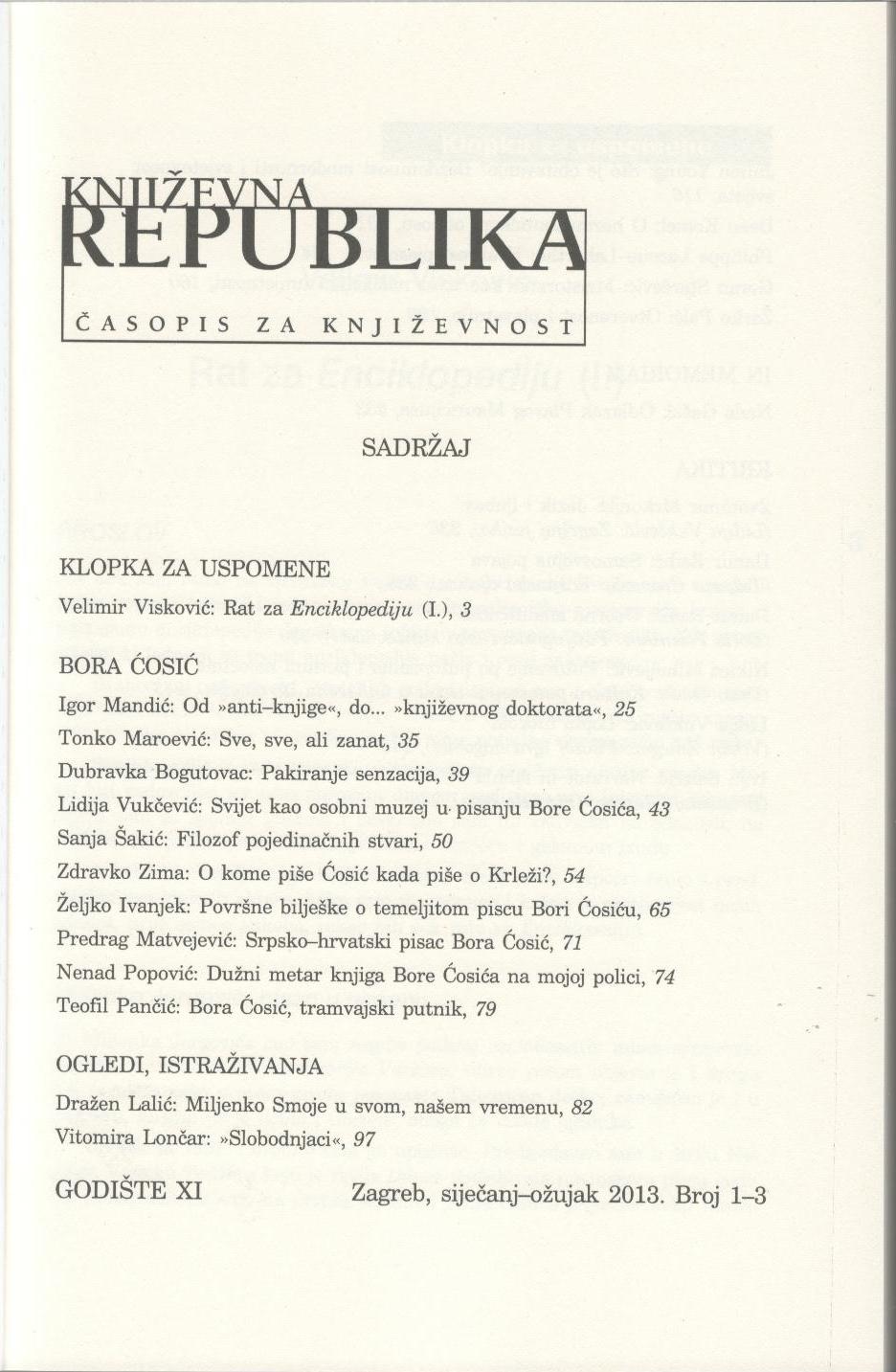 Izašao je novi svezak Književne republike (1-3/2013). Tema broja je Bora Ćosić.