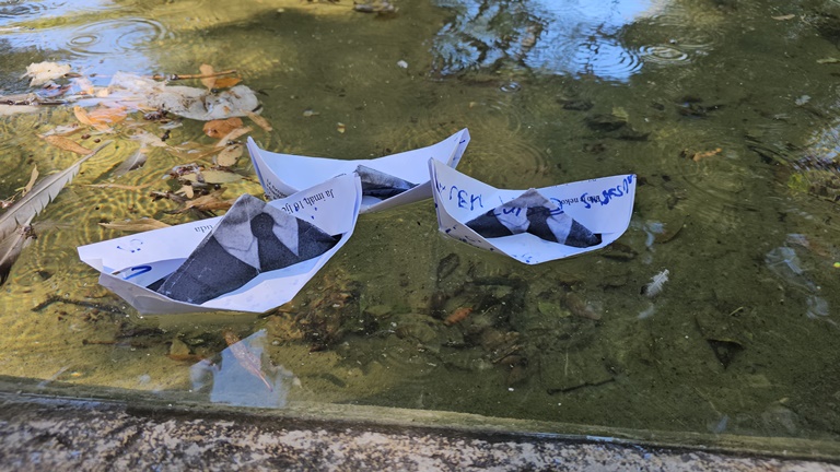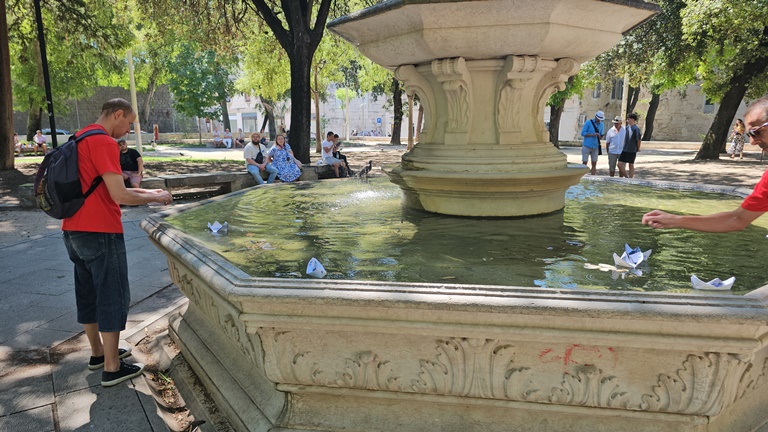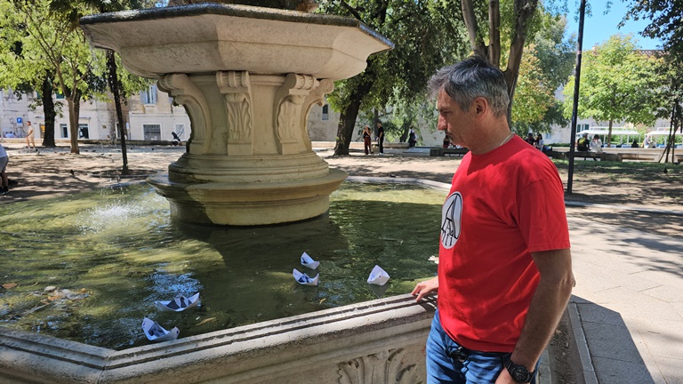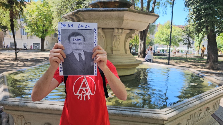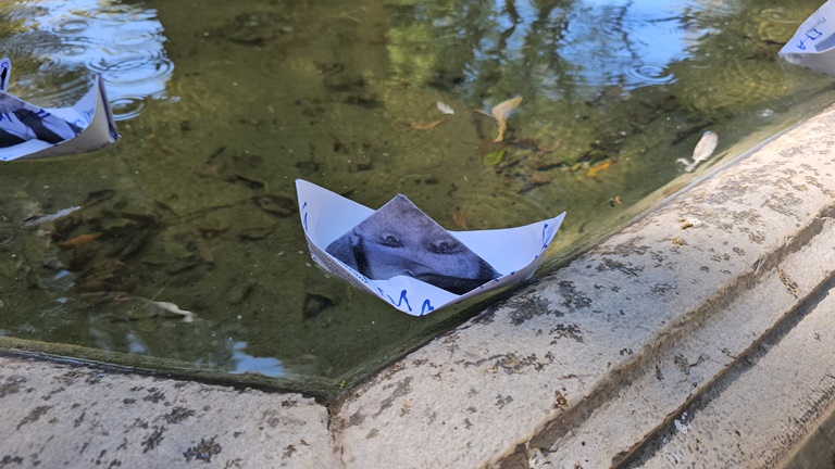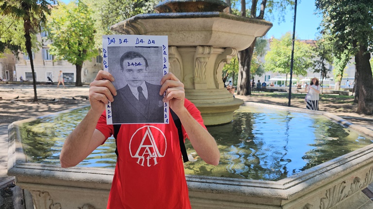 SCENARIJ U splitskom perivoju Đardin članovi udruge DADAnti naizmjenično čitaju Šimićeve stihove na printevima s koje se s jedne strane nalazi Šimićev portret, a s druge strane njegova pjesma. Nakon pročitane pjesme portret ća saviti u maleni brodić i spustiti niz obližnji vodoskok.