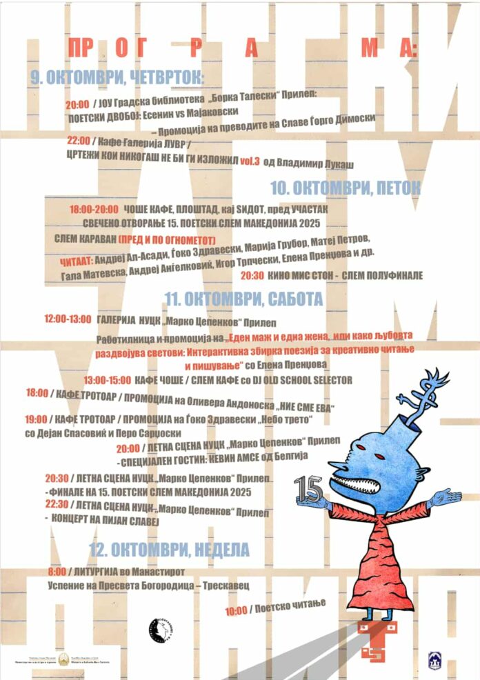 Nacionalni ” Poetry Slam Makedonija” 2025. održat će se u Prilepu po 15. put i trajat će od 9. do 12. listopada.